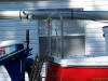 What I came up with is a rear cockpit rail that is needed anyways and putting a roller in the middle so the mast can slide easily back and forth from the storage to step positions. I used standard rail fittings and a 8 ft piece of 7/8 stainless pipe. I carefully bent it to shape being sure to put the roller and T fittings on prior to the final bends which they would not be able to get past. The roller had to be modified as well to allow the 7/8 pipe to pass through. I took the factory plastic fittings and used a piece of PVC pipe with half of a coupling on each end to make the hole the right size. I filled the space in-between the pvc pipe and the hole through the roller with epoxy. As you can see one person can easily move the mast with no need for any additional support.