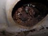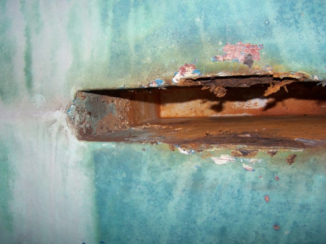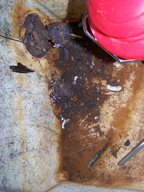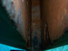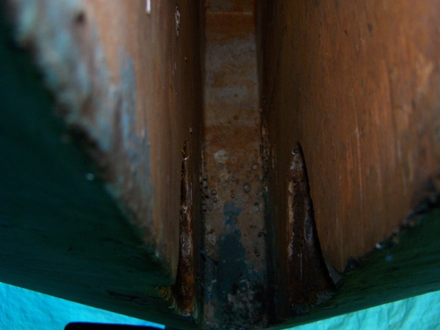 This is what it looked like after the keel was removed, as you can see the port bracket was all but gone. Amazingly I was able to remove the bolts that were left without cutting them. |