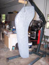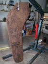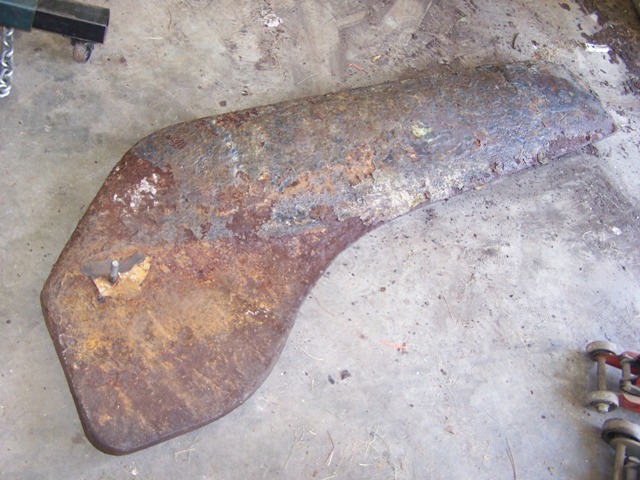 Well this is how it looked after getting it out of the boat and on the floor, let the chipping begin. After about 3 hours of rattling my brains out with an air chipping hammer and grinder I have all the major rust removed. |