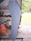 This is washed off with water after about 15 minutes and leaves a grey film covering much of the surface. After it has dried completely the first coat of POR15 goes on. It will take another coat and then it will be ready for a filler material to reshape the keel. |