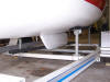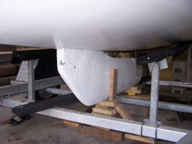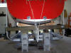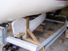 We soon realized that my lowering the boat on the trailer (to make launching and recovery easier) it was going to mean we would have to raise the boat to get the keel back in. I built this hull support for the stern early on and used it many times to lift the boat up to work on the hull.