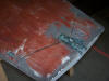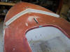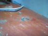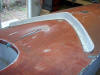 Now it may look pretty rough but all in all it is in solid shape structurally. The coaming needs some reinforcement and there is a small crack in the deck just forward and port of the center board slot that will need repairing, but it is nothing that can't be fixed fairly easily. I have made a access hole just forward of the center board and found the inside dry, solid and all the floatation in this area appears to be in good shape. The boats weight has not yet been determined but just guessing at it after moving it several times it does not feel overweight. You can't tell in this picture but the bottom has already been faired and repainted.